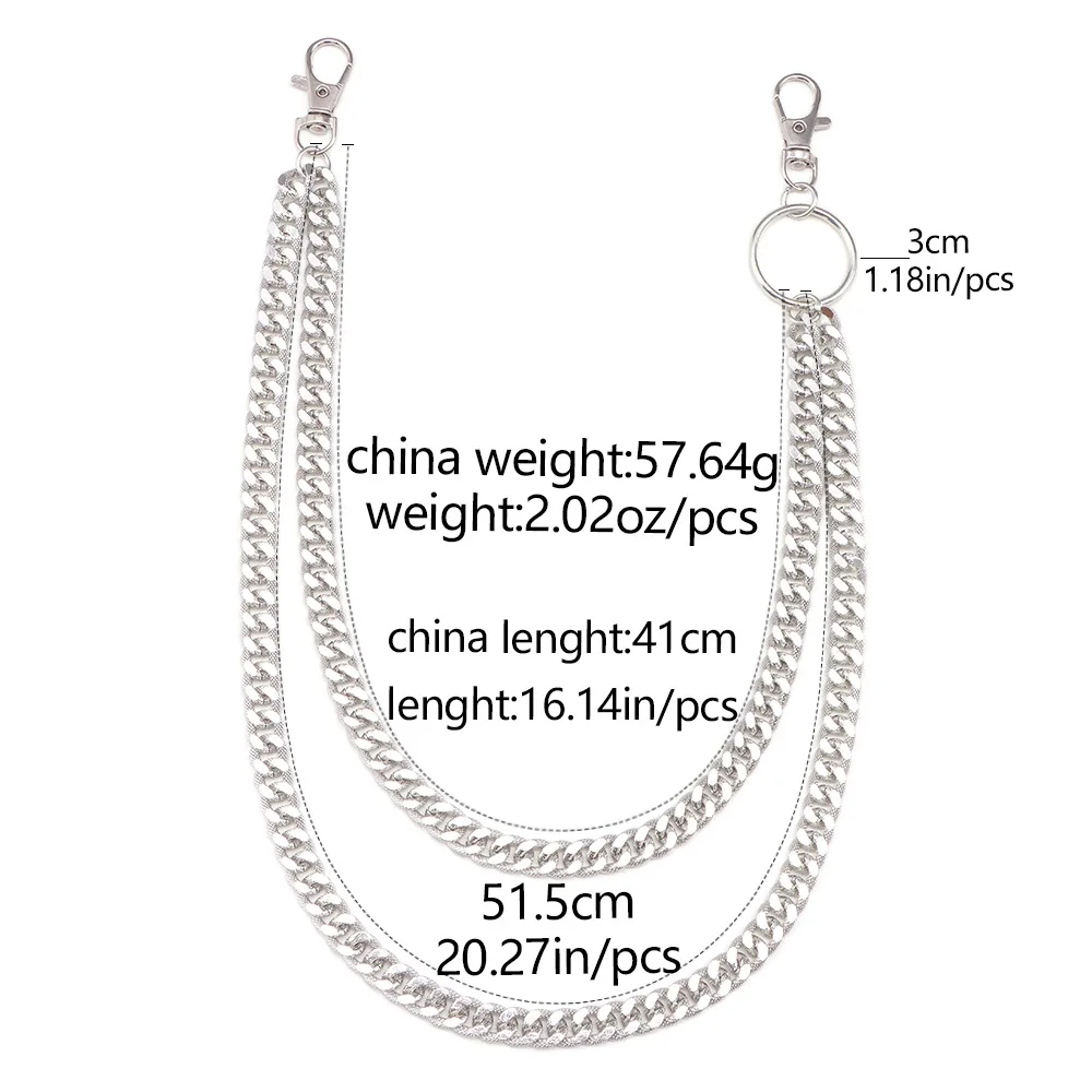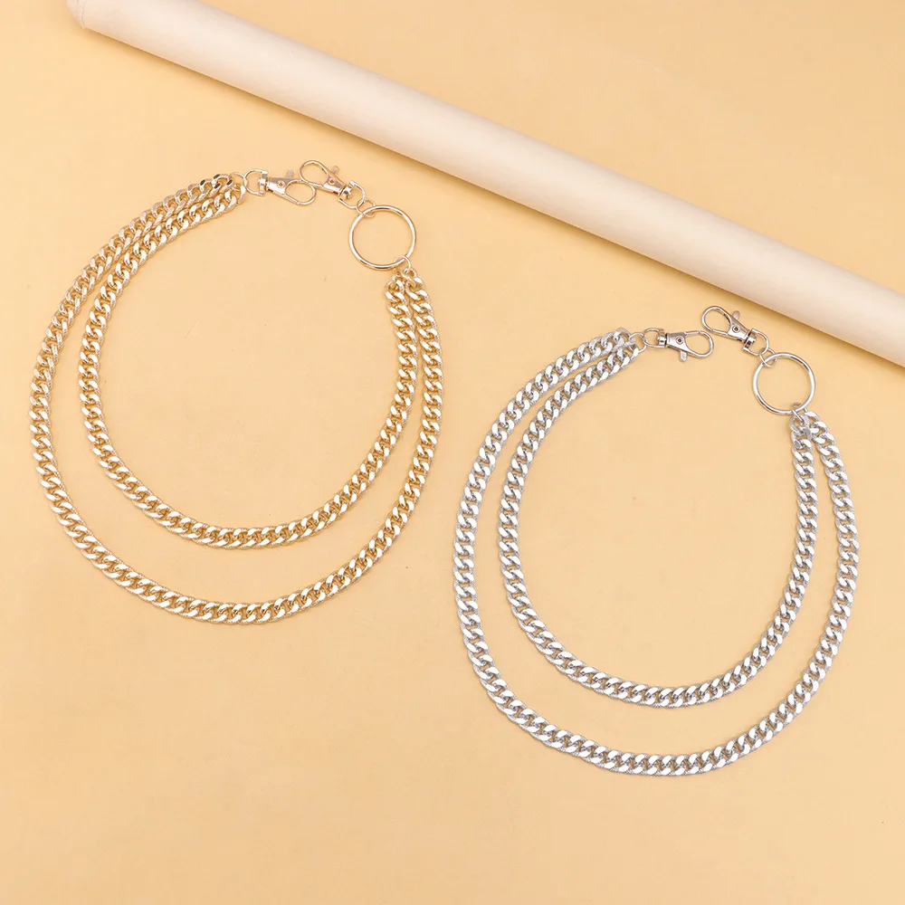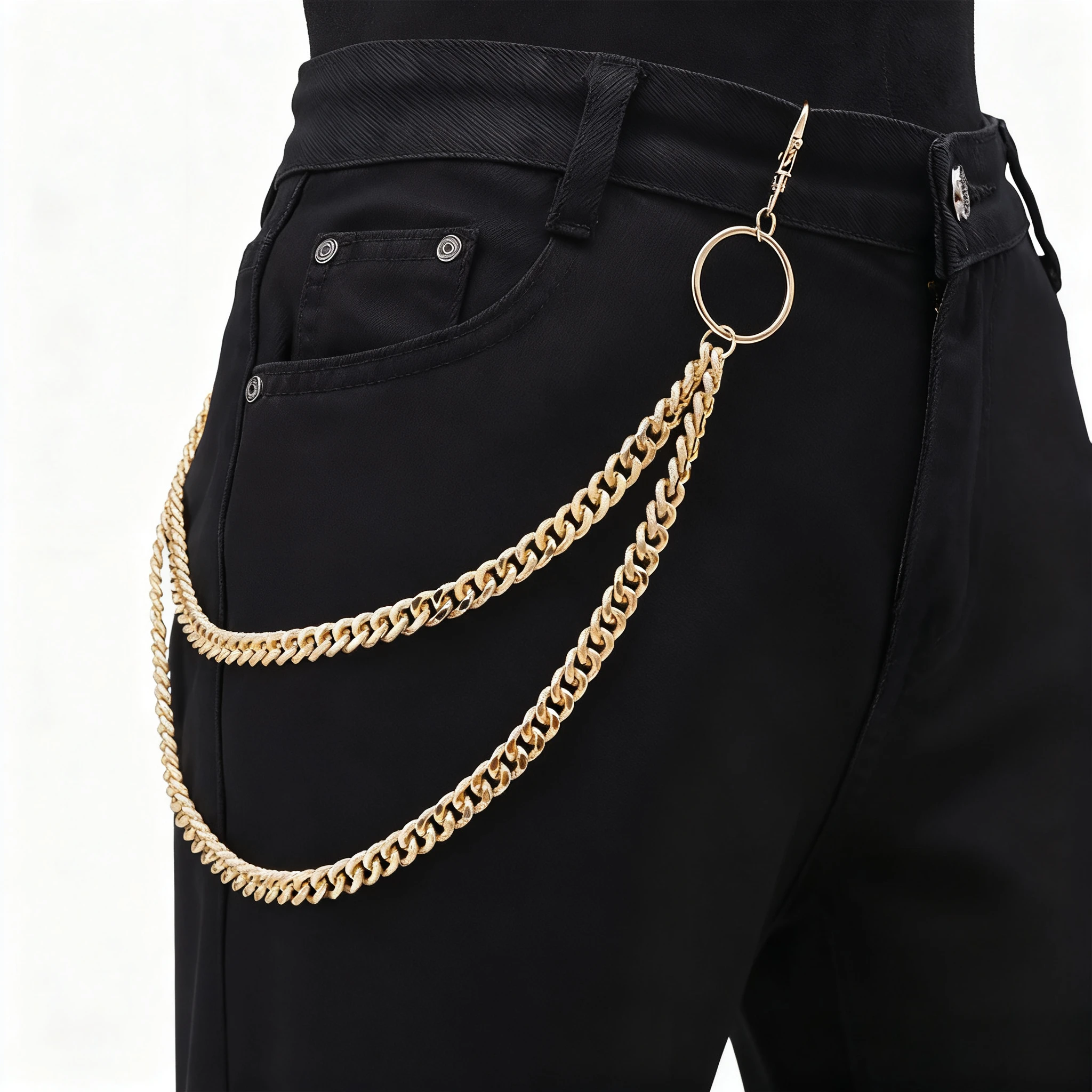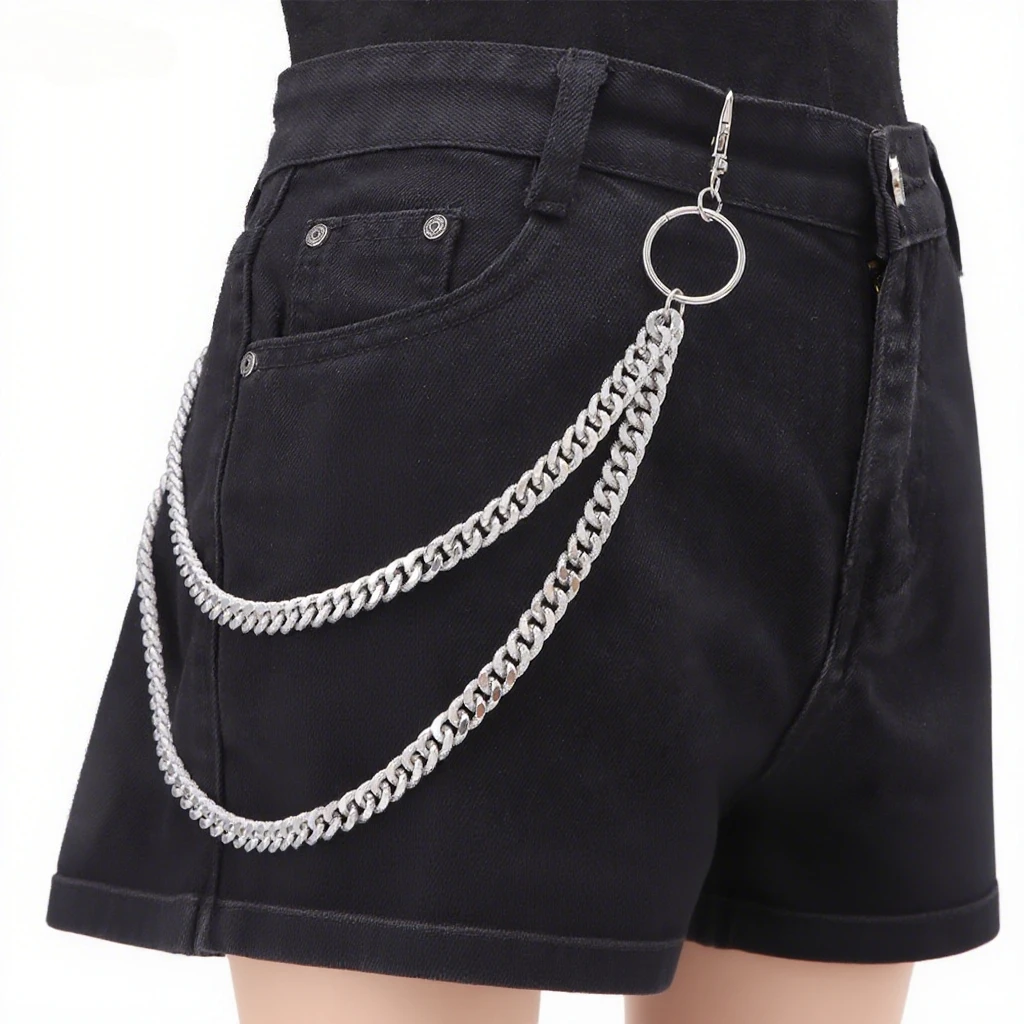 העיצוב משלב מספר שכבות של שרשראות בעוביים שונים. משום כך, נוצר אפקט ויזואלי עשיר שמושך את העין. אתם מחברים את השרשרת לצד המכנס בעזרת טבעות נוחות, והיא משתלשלת בחופשיות בזמן ההליכה.